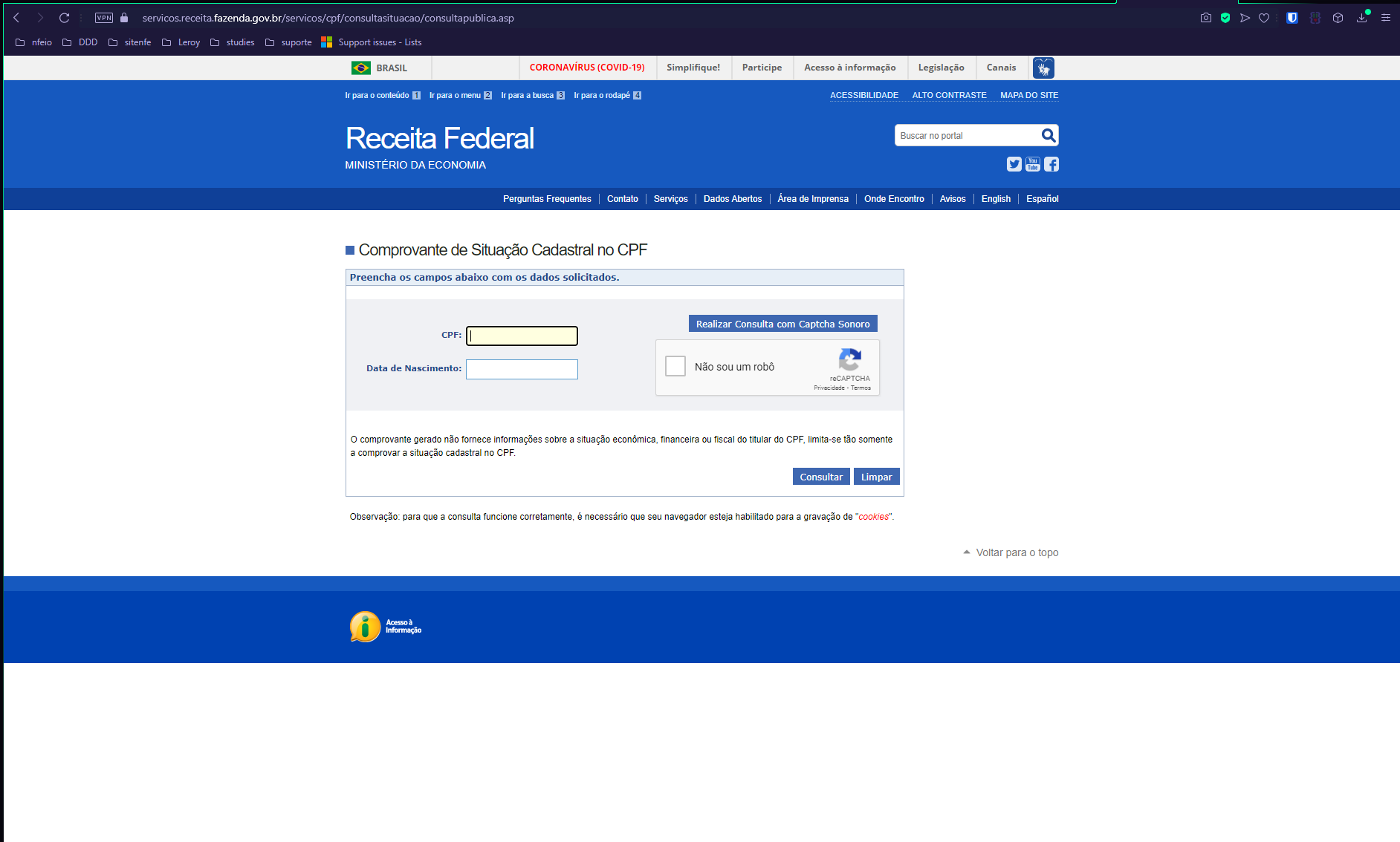 Figura 1. Imagem de exemplo da página de consulta do de Situação Cadastral no CPF