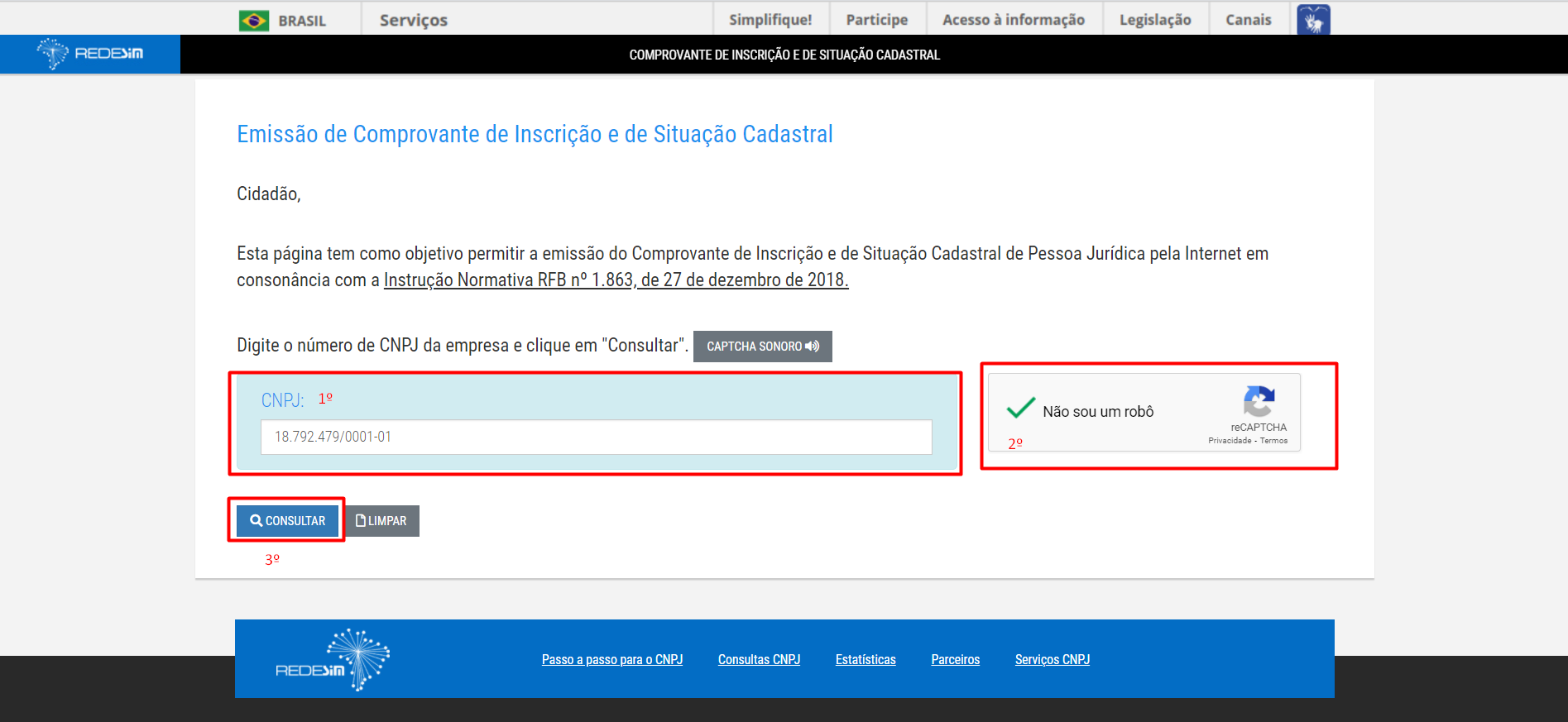 Figura 1. Imagem de exemplo da página de consulta do cartão CNPJ