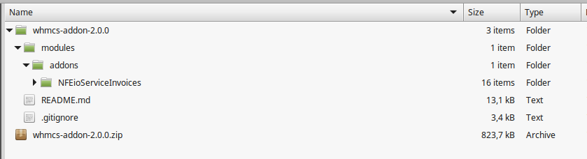 modules/addons. Ao carregar o diretóriomodulesvocê automaticamente carregará o diretório do módulomodules/addons/NFEioServiceInvoices.