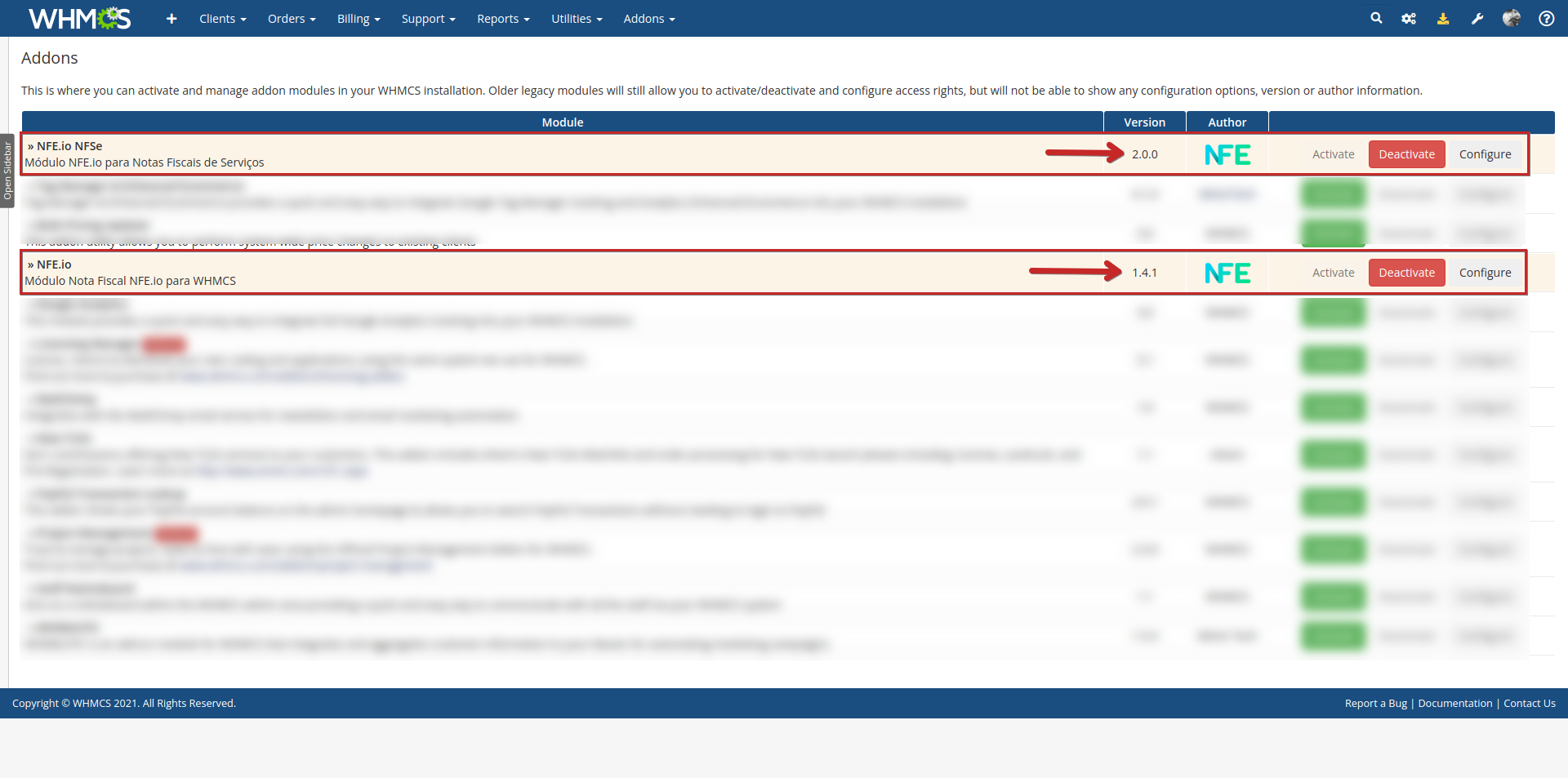 Após desativar o módulo NFE.io v1.4.x, será necessário remover o diretório gofasnfeio existente dentro de modules/addons como última etapa da atualização para a versão 2.x.